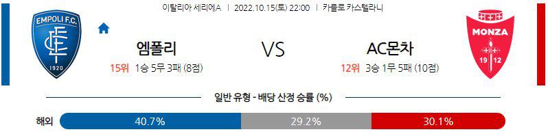 【세리에A】 10월 15일 엠폴리 FC vs AC 몬차