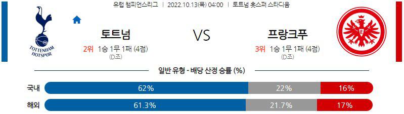 【UEFA CL】 10월 13일 토트넘 홋스퍼 FC vs 아인트라흐트 프랑크푸르트