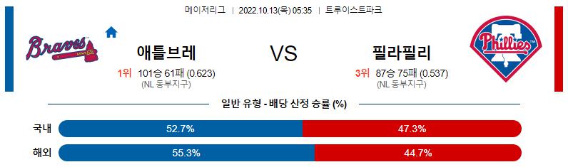 17182 【MLB】 10월 13일 애틀란타 vs 필라델피아 메이저 2022.10.12 2280