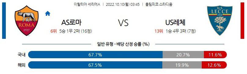 【세리에A】 10월10일 AS로마 vs 레체
