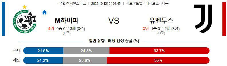 2022/23시즌 유럽 UEFA챔피언스리그 조별예선 H조 3라운드 [ 3패 ]의 성적을 기록하면서 이스라엘 리갓 하알에 소속되어 있는 마카비 하이파는 UEFA챔피언스리그 예선전부터 츠르베나 즈베즈다와의 최종전에서 승리를 기록하면서 진출했지만 확실히 본선 무대에 진출한 이후에는 [ 유벤투스-벤피카-PSG ]와의 전력에서의 차이를 경기력과 성적으로 느끼고 있다는 사실을 기억해보게 된다는 사실만을 고려해보아도 마카비 하이파가 좋은 결과를 목표로해서는 수비자체에서의 밸런스있는 모습에 경기운영을 목표로해서 경기를 이끌어나가주어야한다는 사실을 기억해보게 되겠지만 새미오퍼 스타디움으로 복귀하기는 가운데서도 3라운드 패배를 기억해보게 된다면수비에서 이어지는 리스크를 본선무대에서 어떻게 극복해나가주는지가 관건이 될 것이라는 점을 기억해보게 된다.