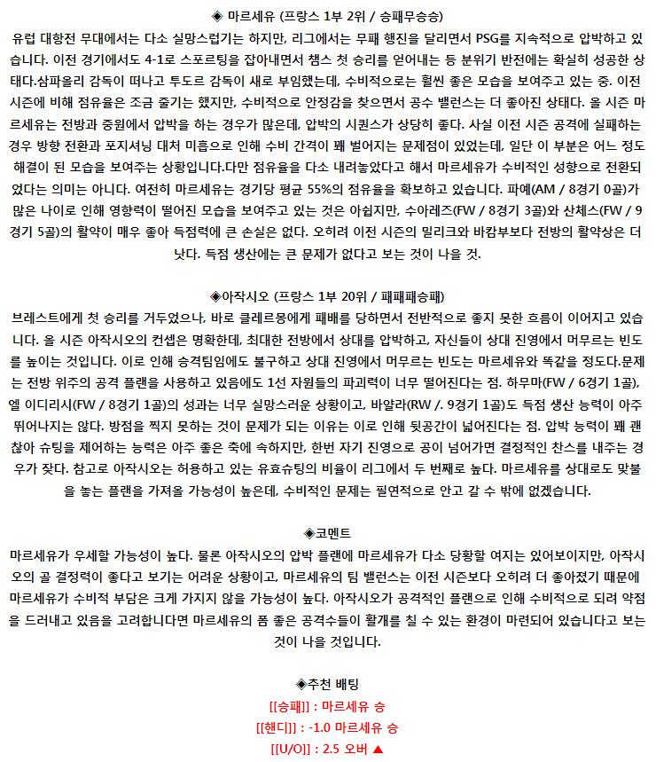 [리그앙] 00:00 마르세유 vs AC아작시오