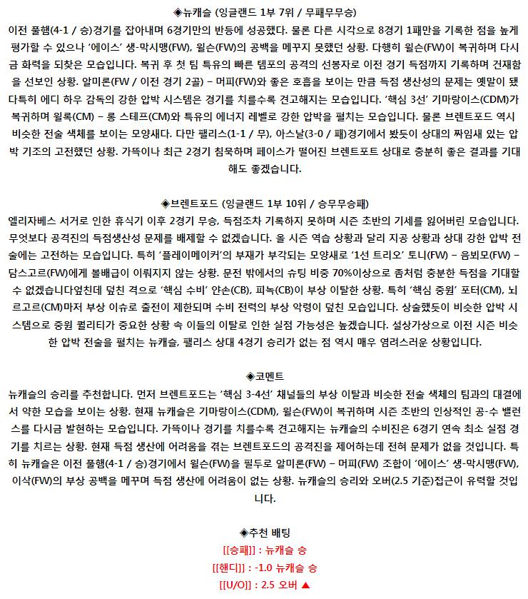 [EPL] 22:30 23:00 뉴캐슬 vs 브렌트퍼드