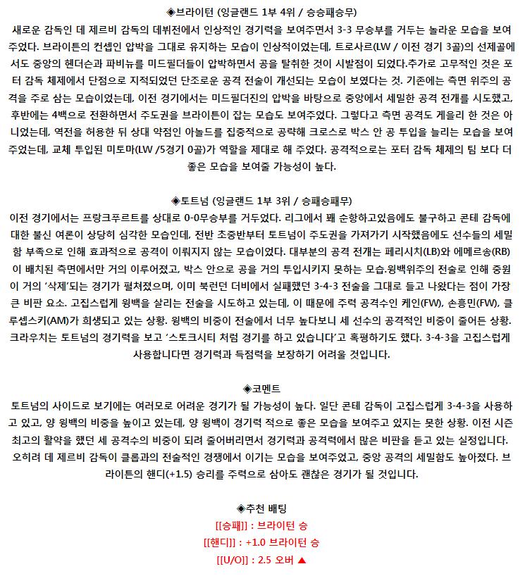 [EPL] 01:30 브라이튼 vs 토트넘