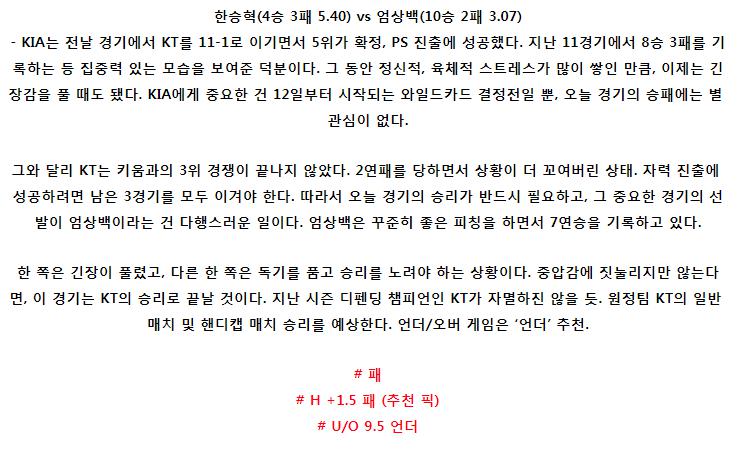 [KBO] 17:00 KIA vs KT