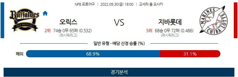 [NPB] 9월30일 오릭스 vs 소지바롯데
