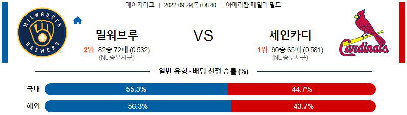 【MLB】 9월 29일 밀워키 vs 세인트루이스