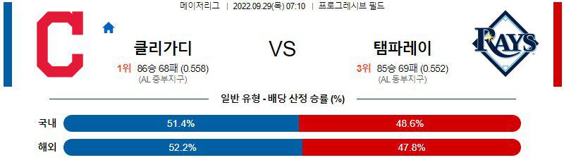 【MLB】 9월 29일 클리블랜드 가디언스 vs 탬파베이