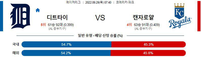 【MLB】 9월 29일 디트로이트 vs 캔자스시티