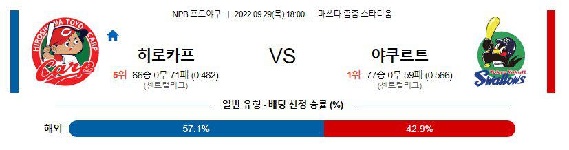 【NPB】 9월29일 히로시마 vs 야쿠르트