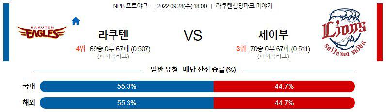 【NPB】 9월28일 라쿠텐 vs 세이부