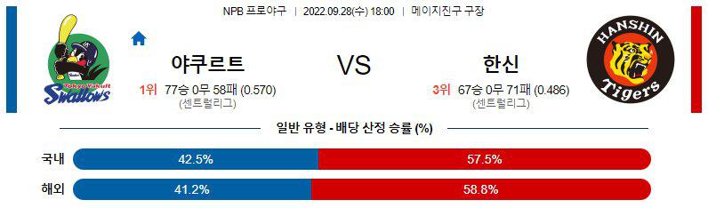 【NPB】 9월28일 야쿠르트 vs 한신