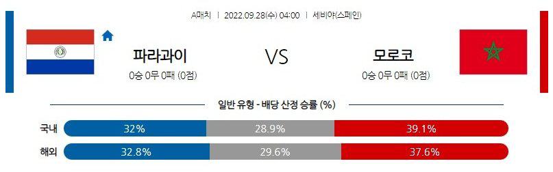 모로코의 승리를 본다. 파라과이보다 전력적으로 나은 칠레의 풀핏 상대로도 경기를 압도했기에 파라과이를 상대로도 좋은 경기를 기대할만하다. 지예흐와 부팔이 상대 측면 수비를 경기 내내 공략할 것이고 암라바의 중앙 지원이 있을 모로코가 평가전을 전승으로 기분좋게 마칠 것이다. 파라과이가 수비를 유지하며 나설 것이기에 언더 경기다.