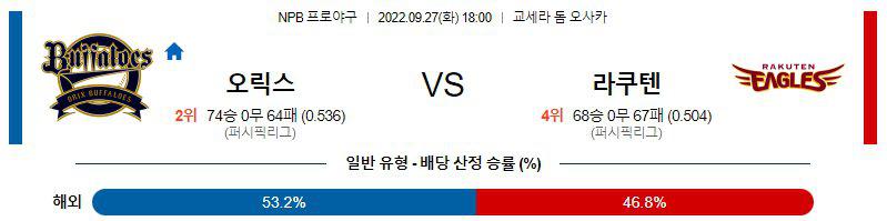 【NPB】 9월27일 오릭스 vs 라쿠텐