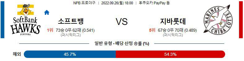 【NPB】 9월26일 소프트뱅크 vs 지바롯데
