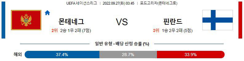 【UEFA NL】 9월27일 몬테네그로 vs 핀란드