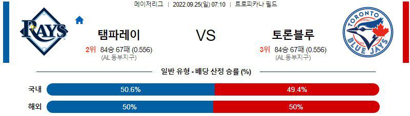 【MLB】 9월 25일 탬파베이 vs 토론토