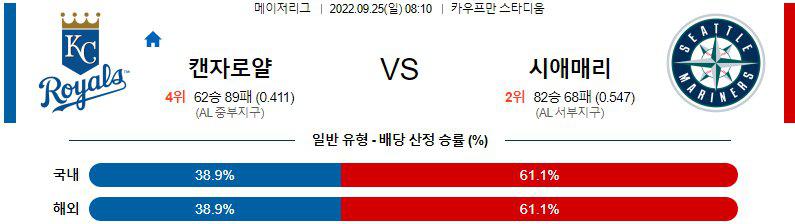 【MLB】 9월 25일 캔자스시티 vs 시애틀
