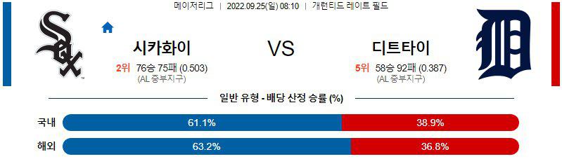 【MLB】 9월 25일 시카고 화이트삭스 vs 디트로이트