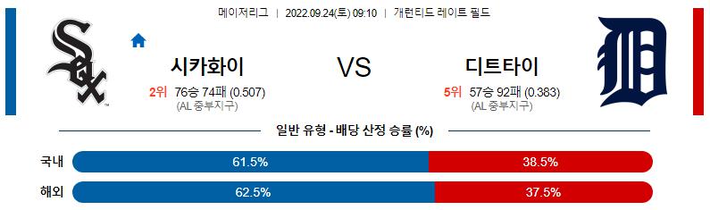 9월 24일 09:10 MLB 화이트삭스 : 디트로이트 MLB분석