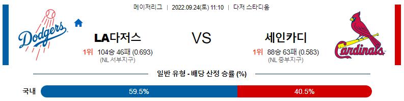 9월 24일 11:10 MLB LA다저스 : 세인트루이스 MLB분석
