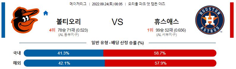 9월 24일 08:05 MLB 볼티모어 : 휴스턴 MLB분석