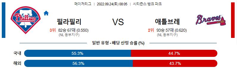 9월 24일 08:05 MLB 필라델피아 : 애틀랜타 MLB분석