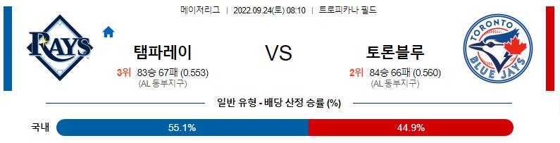 9월 24일 08:10 MLB 탬파베이 : 토론토 MLB분석