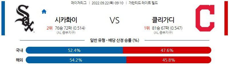 【MLB】 9월 22일 시카고 화이트삭스 vs 클리블랜드