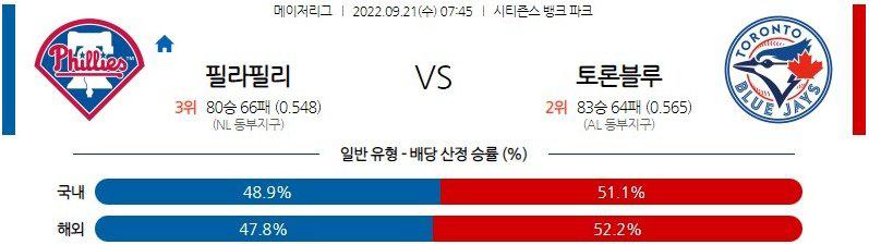 【MLB】 9월 21일 필라델피아 필리스 vs 토론토