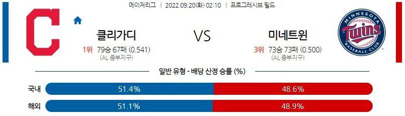 【MLB】 9월 20일 클리블랜드 vs 미네소타