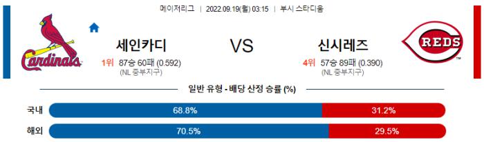 9월 19일 03:15 MLB 세인트루이스 : 신시내티