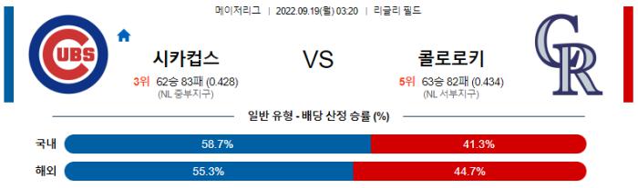 9월 19일 03:20 MLB 시카고컵스 : 콜로라도