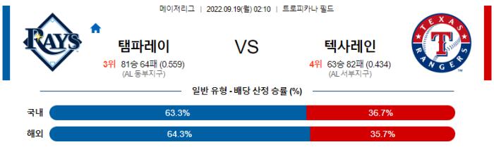 9월 19일 02:10 MLB 템파베이 : 텍사스