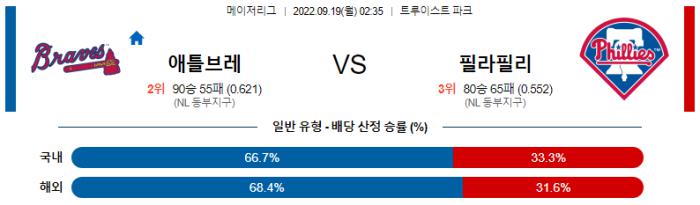 9월 19일 02:35 MLB 애틀랜타 : 필라델피아