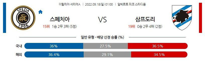 【세리에A】 9월18일 스페치아 vs 삼프도리아