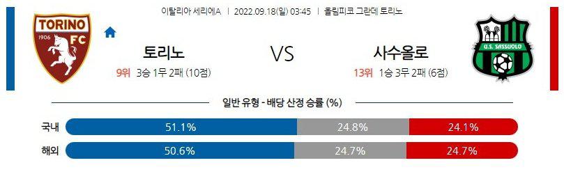 【세리에A】 9월18일 토리노 vs 사수올로