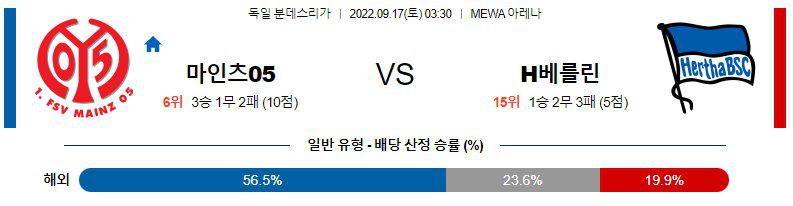 【분데스리가】 9월16일 마인츠 vs 헤르타베를린