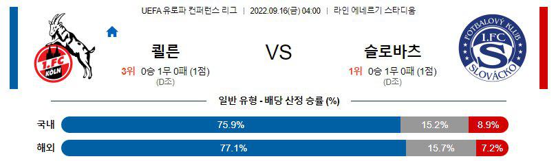 【UEFA CFL】 9월16일 쾰른 vs 슬로바츠코