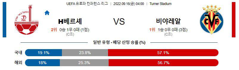 【UEFA CFL】 9월16일 브엘셰바 vs 비야레알