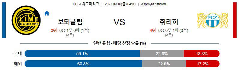 【UEFA EL】 9월16일 보되/글림트 vs 취리히