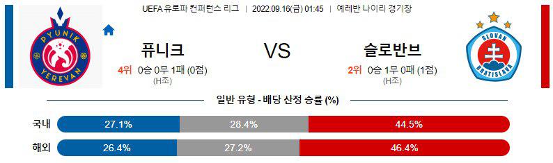 【UEFA CFL】 9월16일 퓨닉예레반 vs 슬로반브라타슬라바