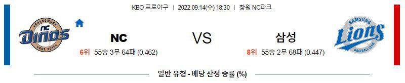 9월14일 한국 프로야구 NC 다이노스 삼성 라이온즈 KBO 경기가 예정이 되어있습니다. 오후 6시 30분에 시작이 되는이번경기는 NC 다이노스의 홈경기로 펼쳐지게 되는 경기입니다. NC는 6위를 기록하고 있고 삼성은 8위를 기록하고 있는데 NC 다이노스 삼성 라이온즈 두 팀의 최근 전력은 비슷합니다.