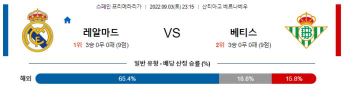 스페인 프리메라리가 9월 3일 23:15 레알 마드리드 : 레알 베티스