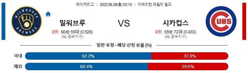 8월 29일 03:10 MLB 밀워키 : 시카고컵스 MLB분석
