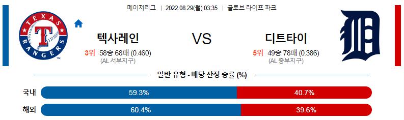 8월 29일 03:35 MLB 텍사스 : 디트로이트 MLB분석