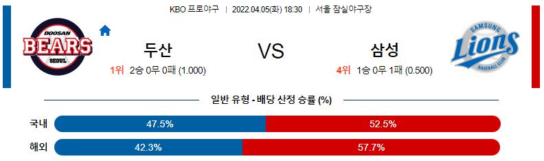 【KBO】 4월 5일 두산 베어스 vs 삼성 라이온즈두산 베어스 (이영하 2021시즌 5승6패 1세이브 2홀드 6.29)