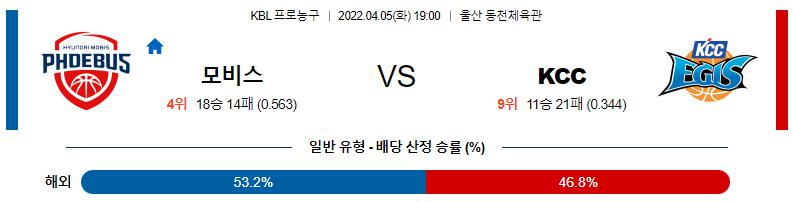 [KBL] 4월 5일 울산 현대 모비스 vs 전주 KCC울산 모비스는 연속경기 일정이였던 직전경기(3/27) 홈에서 고양오리온 상대로 71-86 패배를 기록했으며 이전경기(3/26) 홈에서 한국가스공사 상대로 65-86 패배를 기록했다. 5연패 흐름 속에 시즌 29승24패 성적. 고양오리온 상대로는 이우석(13득점, 7어시스트), 에릭 버크너(13득점, 12리바운드)가 분전했지만 후반전(32-50) 수비가 무너진 경기. 라숀 토마스가 부상으로 결장 하면서 에릭 버크너의 휴식구간에 협력 수비를 들어갔다가 상대에게 외곽슛을 연속 허용했으며 2대2 수비에 대한 대처 능력이 떨어졌던 상황. 또한, 리바운드와 턴오버 싸움에서 모두 밀렸던 패배의 내용.