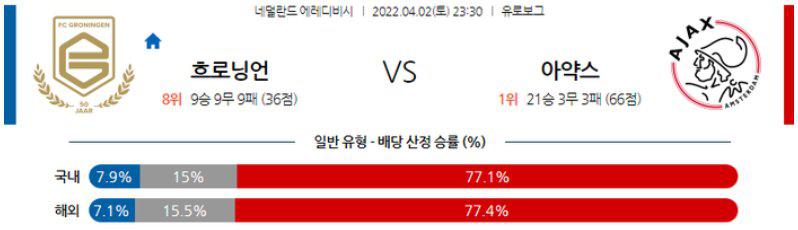오버(2.5)를 주력으로 삼는 것을 추천한다. 아약스의 ‘A매치 바이러스 ’변수는 있으나, 워낙 화력이 좋은 팀이다. 다만 흐로닝언도 최근 라인을 크게 끌어올린 아약스의 뒷공간 약점을 공략할 수 있다. 아약스의 수비 방식이 흐로닝언에게는 좋은 환경이기도 하다.