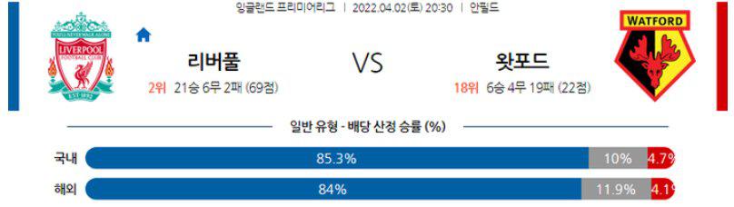 【프리미어리그】 4월 2일 리버풀 vs 왓포드
